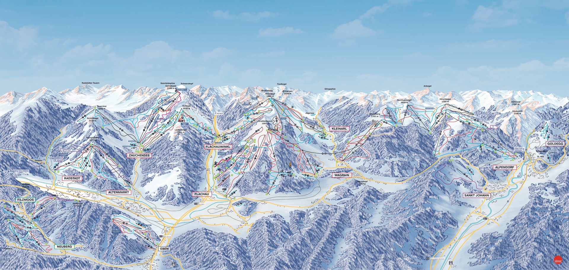 Salzburger Sportwelt is onderdeel van één van de grootste skiregio’s in de Alpen: Ski Amadé. Dit enorme skigebied is opgebouwd rond de bekende skistations Flachau, Zauchensee, Wagrain, St. Johann in Pongau, Altenmarkt en Alpendorf.
